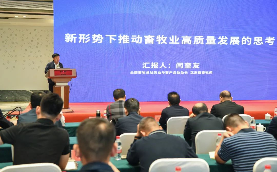 全国畜牧总站奶业与畜产品处处长、正高级畜牧师闫奎友先生在论坛上带来了《新形势下推动畜牧业高质量发展的思考》主题分享,详细阐述了全国饲料工业发展状况,分析了当今世界正经历百年未有之大变局,畜牧业发展所面临的挑战,提出面对新形势新任务,要保持战略清醒,要在确保国家粮食安全上有作为,要在构建新发展格局、谋划企业中长期发展上有突破,要在助力乡村振兴,服务农业强国建设中有贡献。