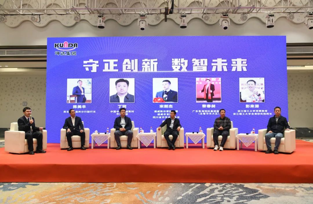 围绕主题,论坛期间举行了圆桌对话。通威股份原副总裁通威农发顾问四川省农学会副会长宋刚杰先生、中国中化益通数科市场总监丁珂先生、广东粤海饲料集团副总裁黎春昶先生、民生银行温州分行副行长陈美丰先生、浙江理工大学特聘教授浙江理工大学龙港研究院院长彭来湖先生分别参与对话探讨,主要从民营企业如何保持长期持续发展,如何提升企业的核心竞争力,如何搭建数字化运营平台,民营企业如何保持与金融机构的良好互动,数字研究院等专业科研院校如何助力企业提升数字化水平等多维度展开积极探讨智慧碰撞,向论坛与会嘉宾传达了满满的正能量,启发全场嘉宾们的深度思考。