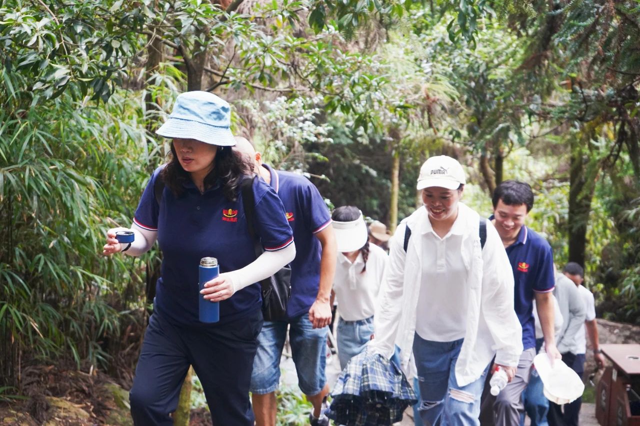 上午8:00管理团队集结出发,首站攀登国家森林公园-玉苍山,大家以昂扬的斗志、蓄势待发的精气神准备开启10公里徒步玉苍山之旅。在领队的一声“出发!”令下,大家气势冲冲向10公里徒步进发。大家穿过一道道崎岖山路,互相打气,成群结队,团结一致,互帮互助。