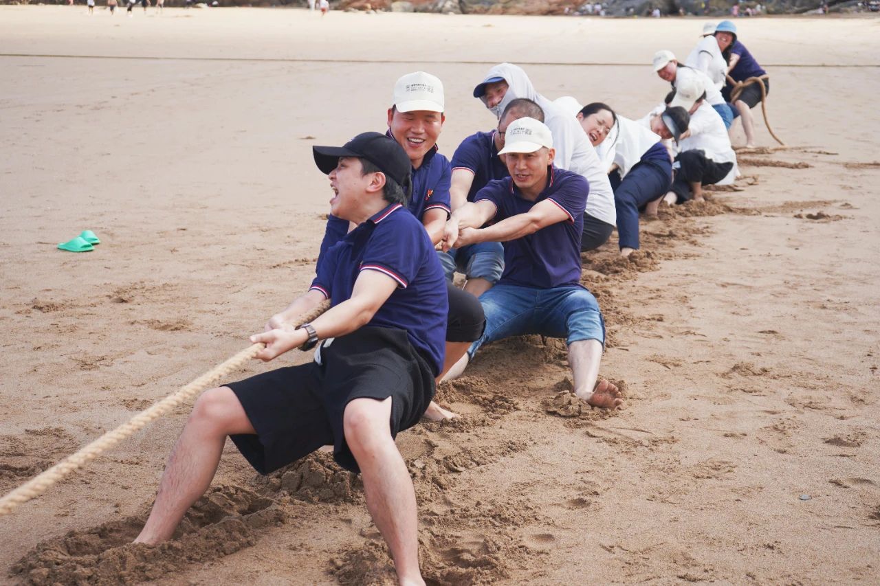 下午,我们满怀热情来到海螺湾沙滩。开展别开生面的拔河PK和接力赛跑,领队分别进行了团队协同作战、战略部署思考的指导。两队选手用毅力和力量挑战极限,每个人都咬紧牙关坚守阵地,场上热闹非凡,加油声、呐喊声此起彼伏,拔河PK和接力比赛每轮角逐精彩激烈、妙趣横生,队员奋勇争先,鼓劲呐喊,不断的欢声笑语将团建活动推向一个又一个高潮。在阳光的照耀下,奋进的ky开云网页版人汇聚成海螺湾沙滩一道最闪耀的风景线。