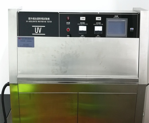 紫外线加速耐候试验箱:通过将待测材料放在可控紫外光强度和可控湿度的交互循环体系中,改变老化温度的方式来进行试验。该仪器对被老化样品所产生的损害主要包括退色、变色、亮度下降、粉化、龟裂、变模糊、脆化、热氧老化变性等。设备提供的测试数据可协同其它强度性能检测设备对原材料的物性评价,对生产原料的选择、配方设计、制品耐候性等方面的研究有极大的帮助。